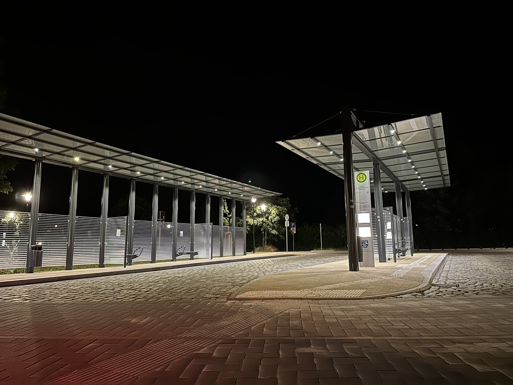 - Etwa die Hälfte aller Bushaltestellen ist inzwischen barrierefrei ausgebaut, oft auch einschließlich der Zuwegung. Am Bahnhof Petershagen/Nord ist zudem ein leistungsfähiger Busbahnhof entstanden, der 6 Buslinien mit der S-Bahn sowie der neuen Park&Ride-Anlage verbindet und über eine öffentliche Sanitätanlage verfügt.